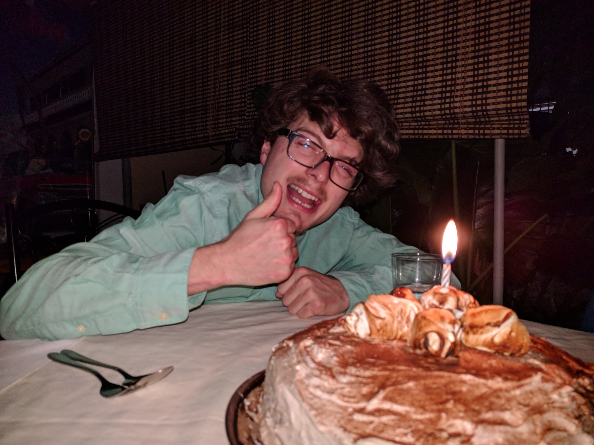 In dieser sehr ungewohnten Szene erleben wir eine unbeschreibliche Herzlichkeit und Gastfreundschaft. Es wurde extra für das Geburtstagsfest ein Schwein geschlachtet, das wohl den halben Tag auf dem offenen Feuer gegrillt wurde und nun halbiert auf einem Tisch vor uns liegt. Dazu gibt es Gemüse und Früchte. Wir sitzen draussen, alle um das «arme Schwein» herum, das Fleisch wird von Hand herausgezupft und gegessen wir ohne Teller oder Gedeck, einfach von Hand. Und als wir satt sind, werden auch noch die Nachbarn bedient und auch die diversen Hunde und Katzen um uns herum kriegen ihren Teil. Und jetzt kommts: Am Schluss wird eine riesen grosse Torte für das Geburtstagskind serviert.